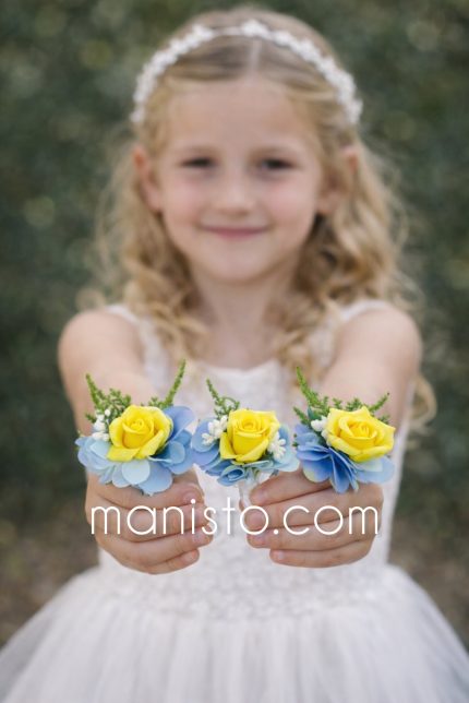 Бутониера Хортензия и роза- жълто и синьо