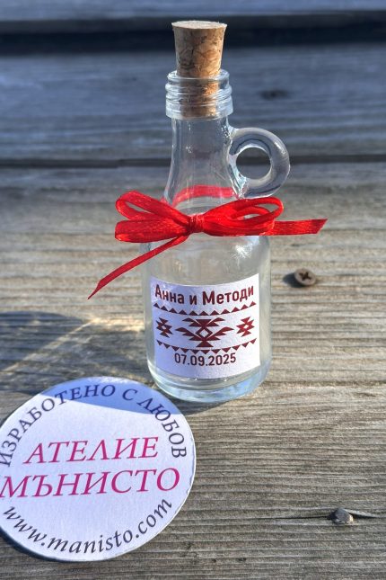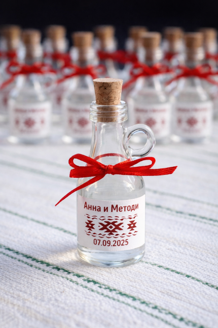 Подарък за гостите Бутилка за домашна ракия – етикет с шевици
