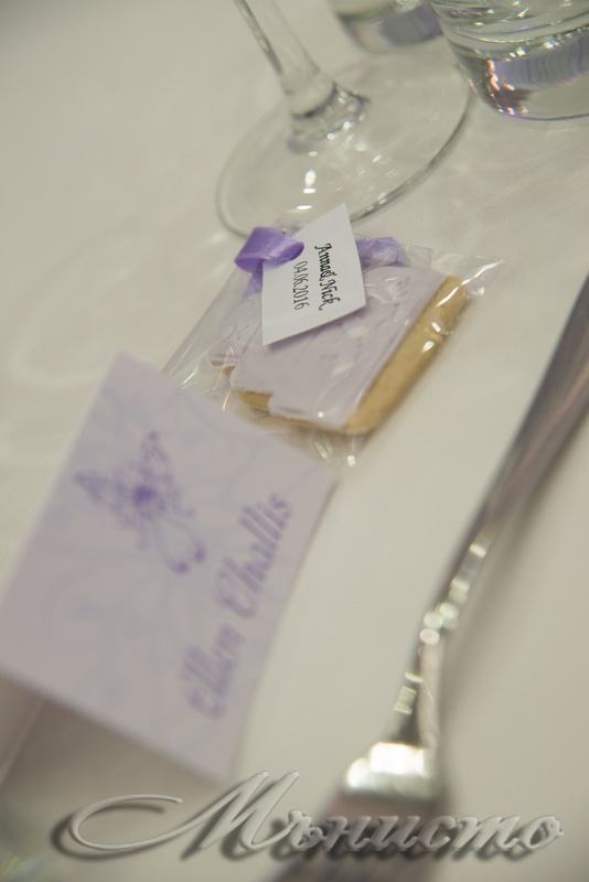 Сватбена декорация в любимия цвят на булката и нежния силует на пеперуди – два елемента преплетени във всеки един детайл на тържестовто – от поканите до плейскартите.