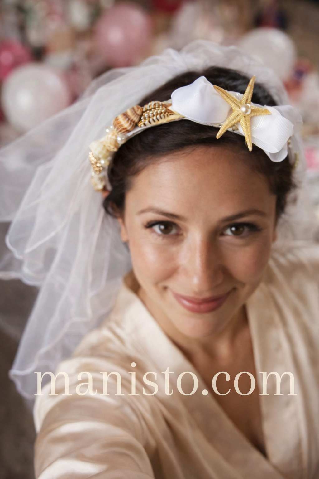 Диадема с воал и морска декорация, подходящ за моминско парти или защо не за самата плажна сватба 🙂