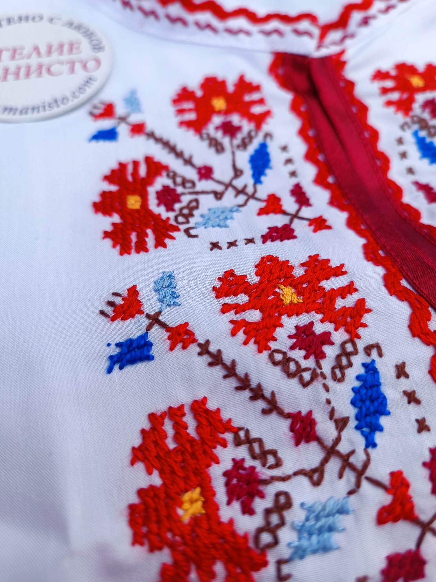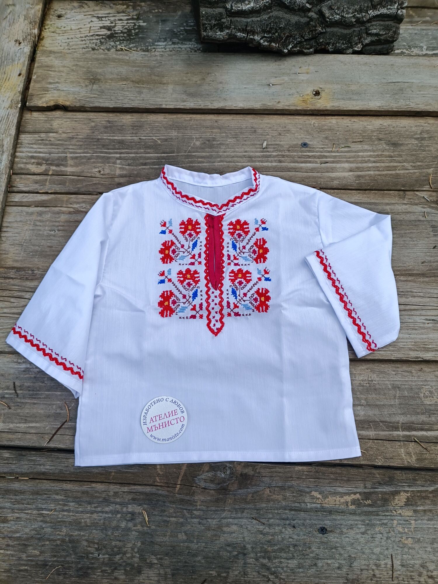 Детска риза с ръчно извезани народни шевици.