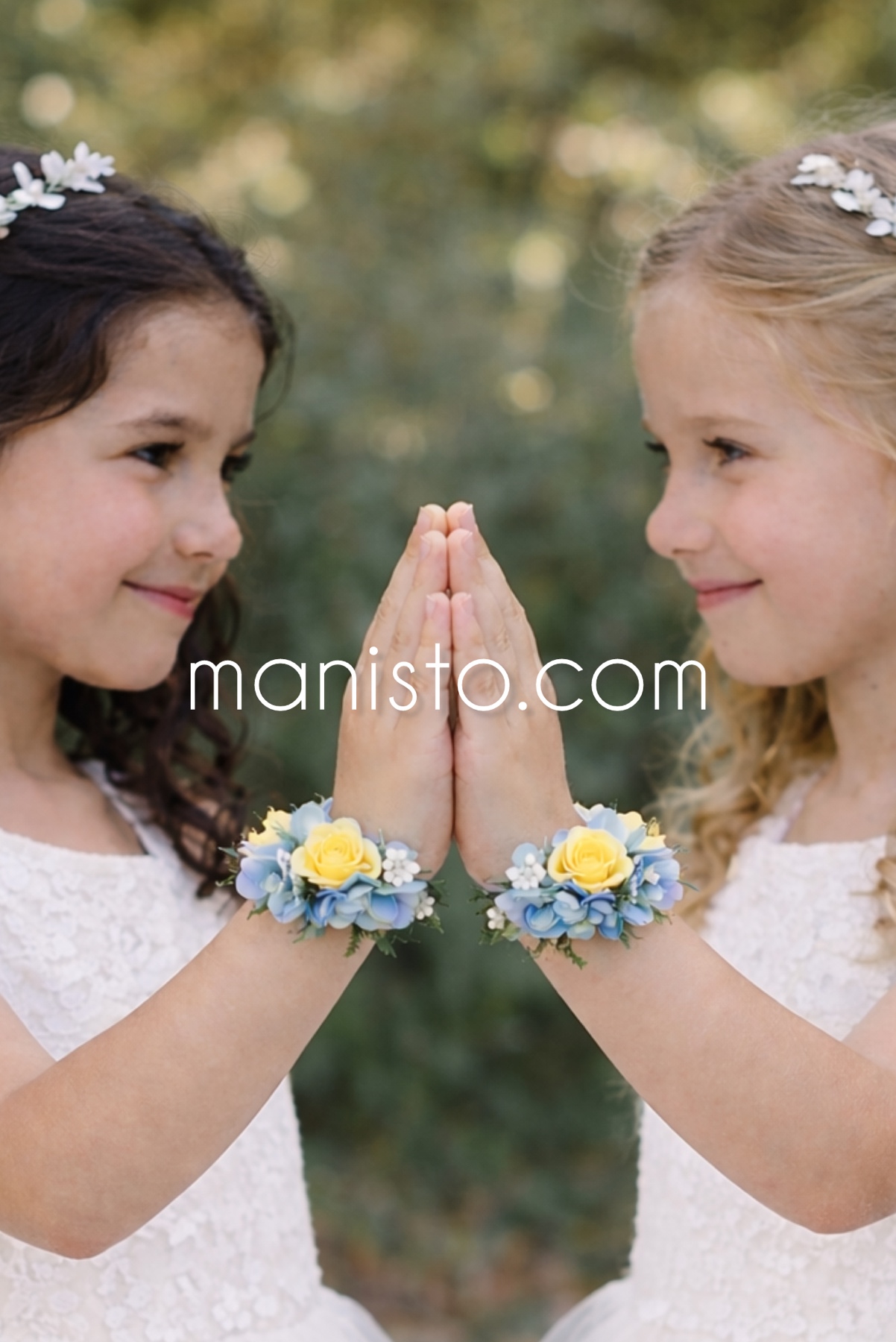 Шаферска гривна Рози и хортензия- жълто и синьо