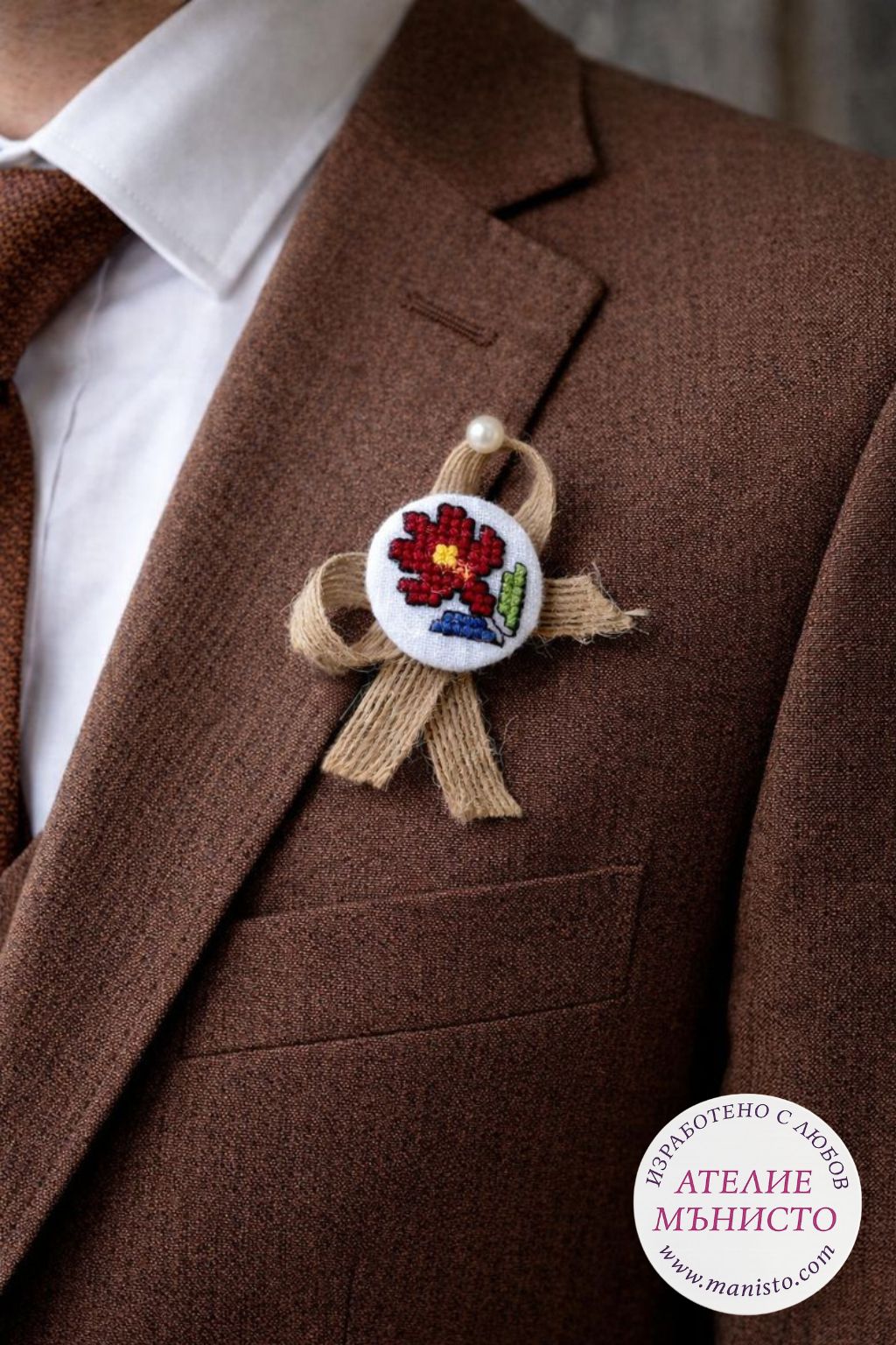 За любителите на традицията и народния стил изработихме този модел бутониери с шевици и натурален сезал.