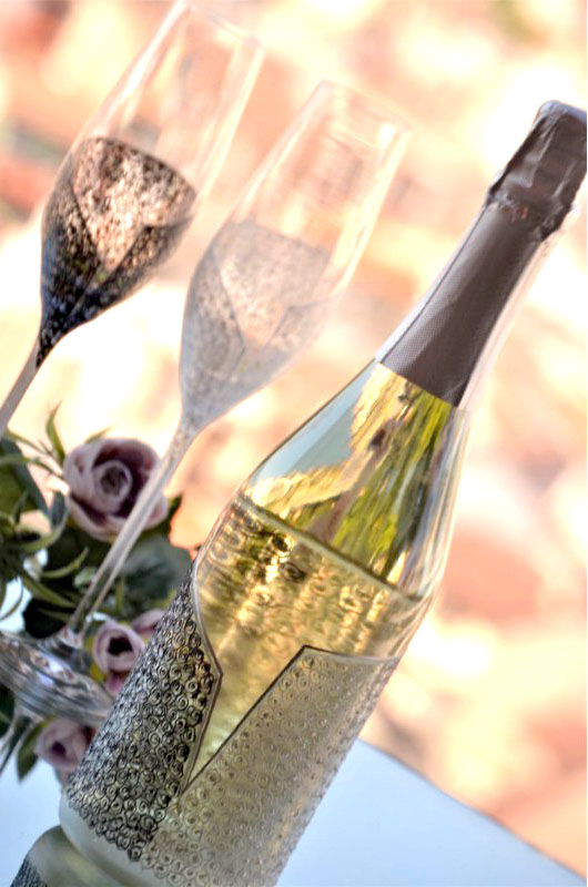 Към всеки ритуален комплект може да се добави шампанско и бокал за църквата в същия дизайн.