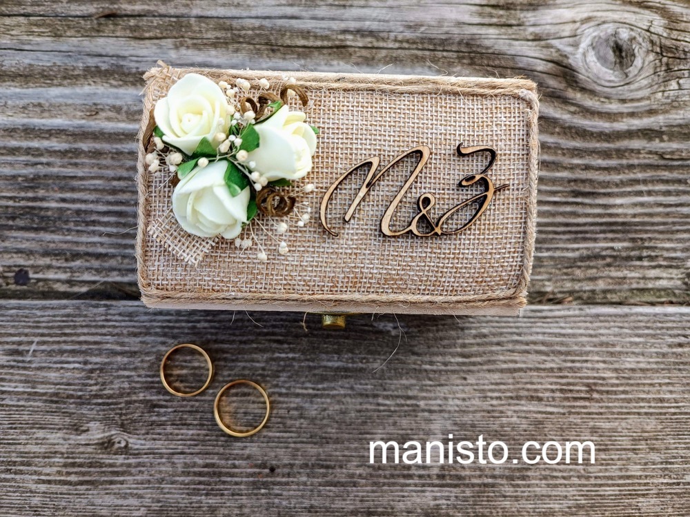 Етикети възглавничка за халки, дървена кутия, кутия за халки, персонализирани, рустик, сватба, сватбени